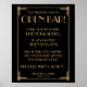 Black Art Deco style Great Gatsby wedding Open Bar sign print poster with golden orange frame and changeable text - you can add your text, Bride's and Groom's name and wedding date. Dimensions of the sign print (poster) are 8 inches by 10 inches (vertical).