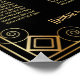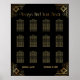 Using a sleek, retro font, I've created a graphic that reads "Please Find Your Seat". Framing embellishments with an Art Deco vibe were added to each corner. All these graphics were embellished with faux gold treatments. Complementary fonts and colours were used for the placeholder fields you'll edit as you personalize this design. All layers were added separately and left unlocked to give you considerable design control. Feel free to change the background colour to anything you prefer. This setup has 12 tables laid out in 3 rows of 4. // 122 // (Alternate versions of the header have been included but "turned off". You can see these by clicking the eyeball beside each layer, should you be interested in any changes.)