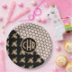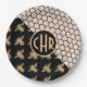 Black and Gold Bees and Pink Honeycomb Monogram Paper Plate