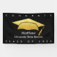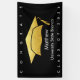 Announce to the world that your favourite grad has reached their milestone with this stunning, simple, modern, personalized banner. Bold, graphic, white typography and a faux gold foil cap icon overlay a black background. Personalize the custom text with your graduate’s name, mascot or school name, and class year. Choose from indoor or outdoor options. Matching invites, thank you cards, cap toppers, fans, napkins, plates and other graduation goodies are also available in this trendy and stylish collection. Guaranteed to preserve cherished memories of their special occasion!