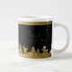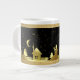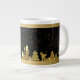 Black and metallic gold tones Christmas village with Santa, snowman Christmas moon all with gold tones sparkles.