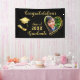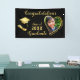 Créez une bannière unique de graduation en noir et or pour la classe de 2025 diplômée avec une photo en forme de coeur, Félicitations dire, et les illustrations de casquette et de diplôme de la grad. S'il vous plaît personnaliser avec le nom et le nom de famille du diplômé, télécharger une photo personnalisée par modèle, et changer un an avant de commander. Vous pouvez également modifier la couleur de l'arrière - plan à l'intérieur de l'outil de conception pour qu'elle corresponde aux couleurs de votre école.