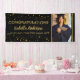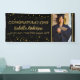 A festive graduation party banner with gold confetti on black background. Personalize with the young graduate name,photo,school/college name and year.