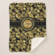 Elegant metallic gold floral damask pattern over black background. Custom monogram