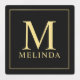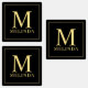 featuring monogram and name in gold professional font style with gold square border on black background.