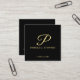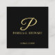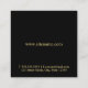 featuring gold elegant script monogram with business information in gold professional font style on black background.