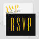 Black and Gold Elegant RSVP Wedding Response Invitation Postcard