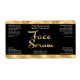 This elegant product label for face serum bottles features a black background with a faux gold foil border. This label contains space for your product name, business name, product weight, ingredients, instructions, social media, and business address. This label measures 3.75 inches by 2 inches (95 mm by 51 mm) and is suitable for bottles with a diameter of 1.2 inches (31 mm) or more such as 2 to 4 oz (120 ml) bullet, cylinder, and boston round bottles. It can also be used for cosmetic jars and other types of cosmetics packaging.
