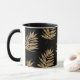 Black two-tone coffee mug with a gold fern leaf pattern.