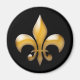 This classic magnet features a gold fleur de lis symbol on a black background. Makes a great gift.