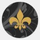 Black and gold Fleur De Lis Sticker, with old gold and charcoal grey swirl background
