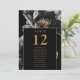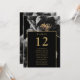 These elegant black and gold floral wedding table numbers can be personalized with your guests names in modern typography. Designed by Thisisnotme©