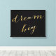 Gold foil Dream Big wrapped canvas printed on black background. Dimensions of the wrapped canvas are 14 inches by 11 inches (horizontal). You can get smaller (10 inches by 8 inches) or larger (60 inches by 40 inches) canvas too or any other custom dimensions.