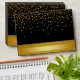 A Black colour envelope with gold stripe badge and gold confetti on top and gold metal glitter surface inside the cover gives perfect black and gold envelope.