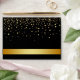 A Black colour envelope with gold stripe badge and gold confetti on top and gold metal glitter surface inside the cover gives perfect black and gold envelope.