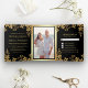 Black and Gold Foil Floral Leaves Wedding Tri-Fold Invitation