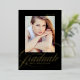 Elegant graduation announcement featuring the graduate's senior photo and "graduate" in a gold foil modern calligraphy script with a black background. Personalize the photo graduation announcements by adding the graduate's name, school name, and graduation year. The back of the graduation announcements features a stylish black and white trellis pattern.