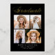 Elegant graduation announcement featuring "Graduate" displayed at the top in a gold foil calligraphy script with a black background (or color of your choice). The design features four photos of the graduate displayed in a collage-style layout with the graduate's name, school name, and graduation year shown below. The 4 photo graduation announcement reverses to display optional text such as future plans, graduation party details, etc. The chic graduation announcement is perfect for announcing the graduation of both high school and college graduates.