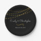 Black and Faux Gold Foil String Lights Wedding Plates for a Elegant Wedding Reception or Rehearsal Dinner. The name and date can be updated on this plate.