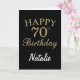 Black and Gold Glitter 70th Birthday Card with personalized name. For further customization, please click the "Customize it" button and use our design tool to modify this template.