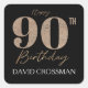 Black and Gold Glitter Numeral 90th Birthday Square Sticker
