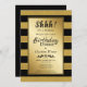 A modern black and gold glitter striped surprise birthday dinner party invitation.