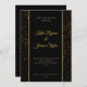 Black and Gold Glitter Wedding Invitation - Are black and gold your wedding colours? Are you looking for a mix of fun, style and sophistication for your gold and black wedding stationery? Check out this wedding invitation. The centre of the invitation has a black background with gold lettering. The sides of the invitation are black with gold glitter. It is fun, modern and eye-catching!