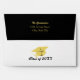 Black and Gold graduation party. Customizable envelope for a grad party for him or her. The back of the envelope is decorated with a gold graduation cap and graduation year to personalize. Fun graduation party invites envelopes for high school or college graduations.