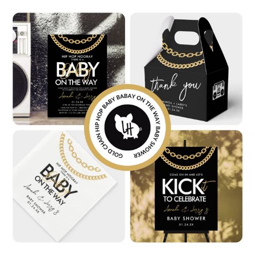 This Black and Gold Hip Hop Baby Shower invitation will intrigue your guests with anticipation of a kickback baby shower. There is a Baby Babay on the way and it's time to celebrate in true hip hop fashion.
