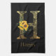 Black and Gold Letter H Sunflowers Kitchen Towel