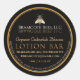 Contact info, address and product volume is written in the lower part of label under the word "LOTION BAR" which takes centre field in a chiseled gold metallic font. Editable product ingredient list appears along the curved lower border.