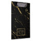 Coordinates with the Black and Gold Marble Designer Business Card Template by 1201AM. Your name or business name is elegantly displayed over a black and faux gold background for a very chic aesthetic on this personalized clipboard. Art and design © 1201AM Design Studio