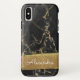 Black and Gold Marble with Gold Foil and Glitter Elegant Monogram Name Phone Case. This Phone Case can be customized to include your first name.