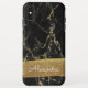 Black and Gold Marble with Gold Foil and Glitter Elegant Monogram Name Phone Case. This Phone Case can be customized to include your first name.