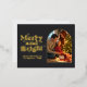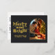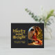 Black and Gold Merry and Bright Retro Christmas Foil Holiday Postcard