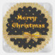 Modern Chic Classy black and gold polka dotted "Merry Christmas Sticker with pretty gold bow.