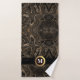 Black and Gold Modern Abstract Swirl Monogrammed Bath Towel Set
