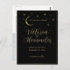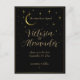 Featuring a gold graphic illustration of a crescent moon surrounded with celestial stars, this celestial theme save the date postcard is perfect for your modern wedding when the stars align. Customize the text on front and back with your own wedding and venue info. Add your own special photo.