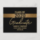 Share your joy and celebrate the Graduate. Customize this postcard for the Class of 2020 Graduate. Congratulations on your child's Graduation. Gold and black print. Use this template to customize your announcement with a special greeting announcement on the back. Make it easy by including your return address on these postcards already for mailing.