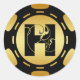 BLACK AND GOLD MONOGRAM LETTER H POKER CHIP CLASSIC ROUND STICKER