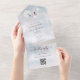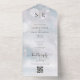 This chic all-in-one winter wedding invitation can be personalized with your monogram initials and wedding day information on a snowflake background. The invitation includes a perforated RSVP card with your wedding website QR code. Designed by Thisisnotme©