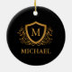 Black and Gold Personalized Stylish Monogram Name Ceramic Ornament