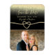 Simple, elegant black wedding save the date invitation magnet with gold rope heart and photo.