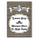 Wonderful black and gold stripped plaid Bunco table card. This is the Middle table card of a set of three. Text can be changed to fit your own Bunco table transition style. Bunco or Bunko table cards are an easy way for your players to identify which table to transition to. My Bunco group finds the Bunco table cards that I've created easy to read, well made and helps the hostess with table card set up. We keep a set of different cards in our shared Bunco supplies box. Have fun playing Bunco.