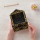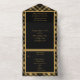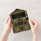 A very beautiful and elegant black and gold plaid pattern wedding invitation.