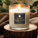 a luxury label for scented soy wax candles with a black background and gold border and space for your logo.