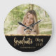 Black and Gold Script Photo Graduate Class of 2021 Large Clock