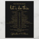 This stylish wedding schedule-timeline can be personalized with your wedding details set chic gold lettering on a black background. Designed by Thisisnotme©