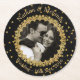 Elegant black and gold party coasters to personalize with your own photograph and text, perfect to celebrate special occasions like Weddings and Engagements. An ornate gold coloured frame surrounds your photograph set off against a black background with gold coloured flecks. Looks stunning with black and white photographs.