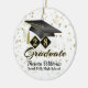 This keepsake ornament features black and gold cap and tassel on diamond shields with your graduating year, diploma, name and school on golden stars background. Makes a great gift this holiday season. Easy to personalize with custom options.